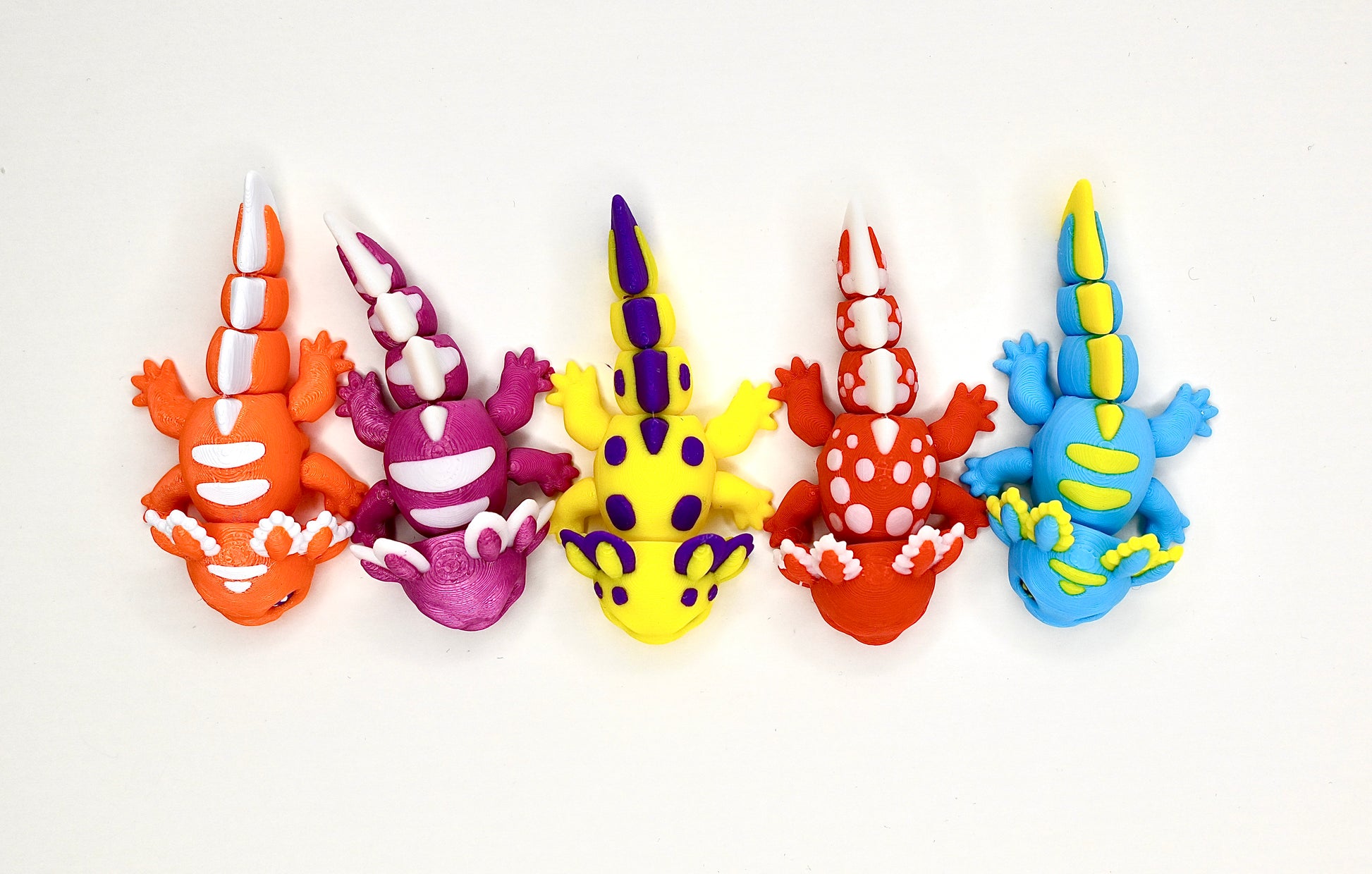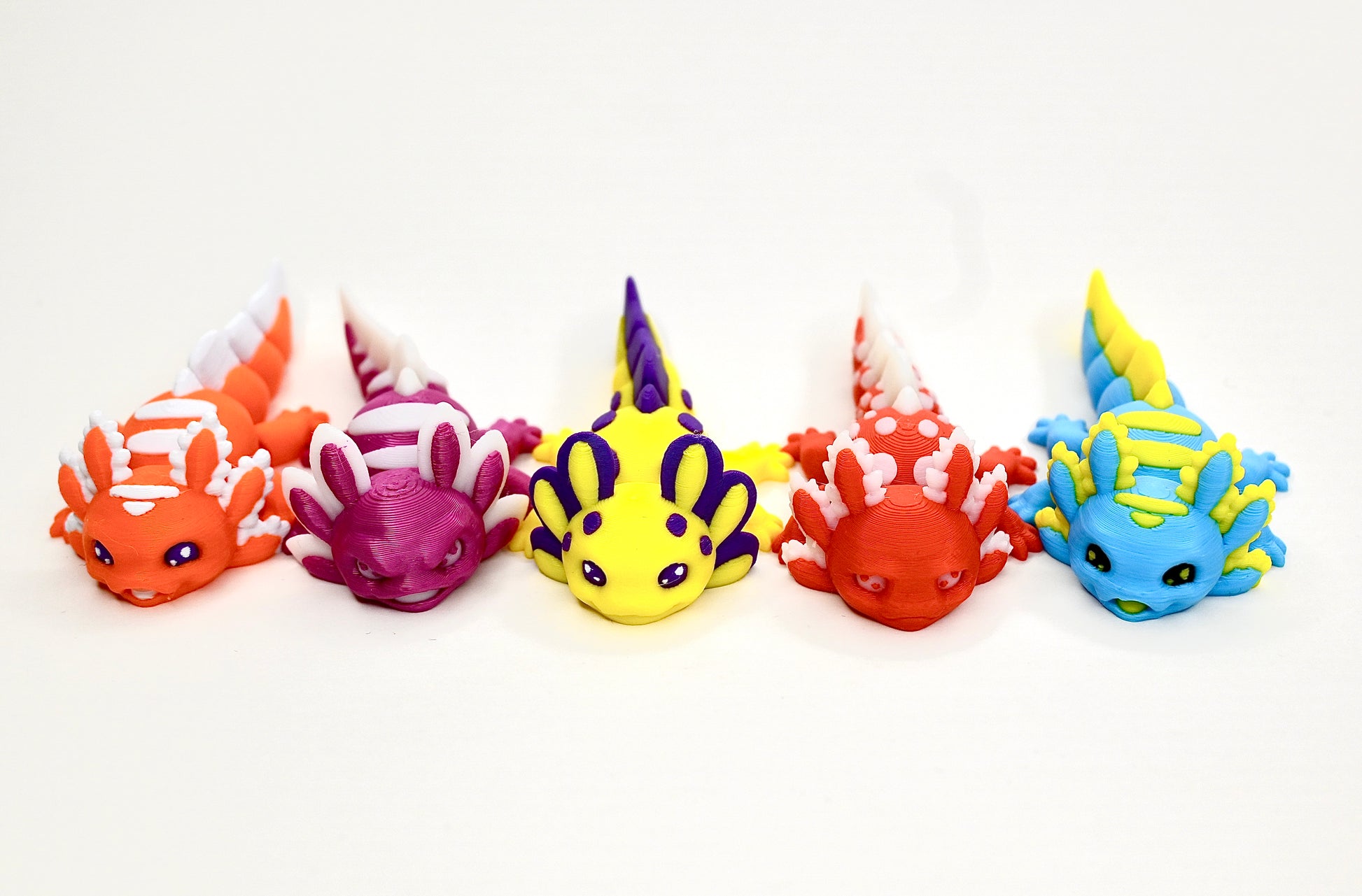 Introducing the adorable "Baby Candy" axolotl! This vibrant Colour 3D-printed, articulated toy is as fun to play with as it is to admire. With its flexible joints, Baby Candy can wiggle and move, making it a perfect fidget toy for kids and a charming desktop companion for adults.