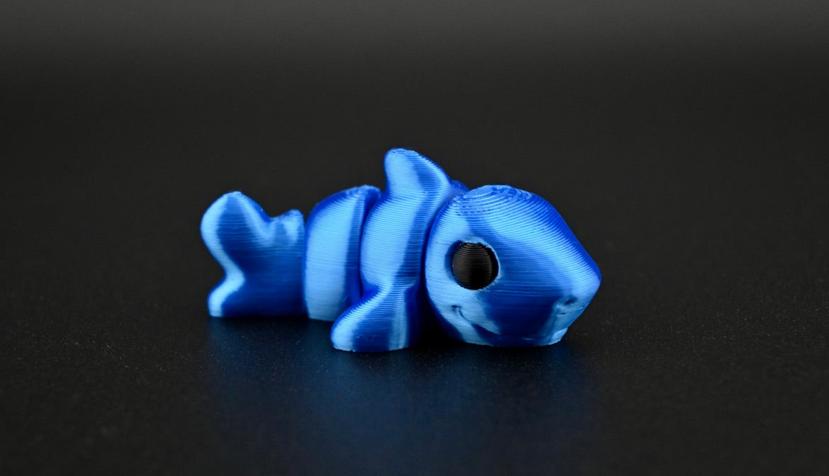 This miniature shark features a vibrant blue silk filament color and realistic black beady eyes. Its detailed design makes it an excellent tool for learning about marine life, while its durable construction allows for interactive play and fidgeting. Combining educational value with tactile engagement, this versatile 3D toy is perfect for both study and entertainment.